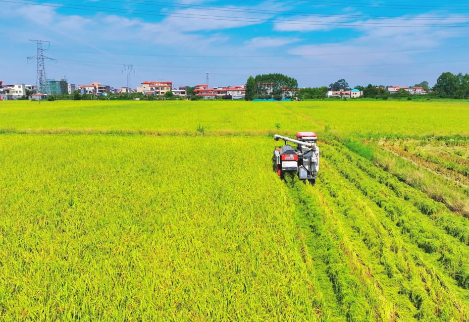 在博罗县石湾镇伴永康优质丝苗米种植基地内,千亩早造水稻已陆续成熟,正式进入集中收割期。